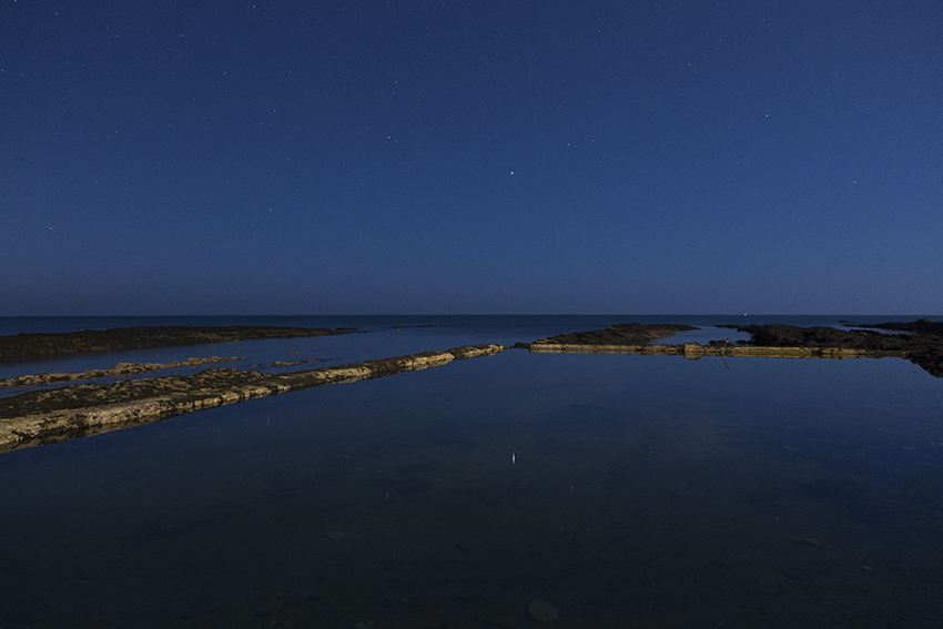 The bright star Arcturus (and some of its fainter friends) reflected in a tidal pool at Castle Sands.